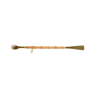 22” shoe horn. Plastic handle and back scratcher mounted on sturdy simulated bamboo pole.