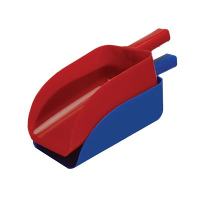 This Economy Feed Scoop is made of durable plastic with easy grip handle and holds approximately 3 quarts.
