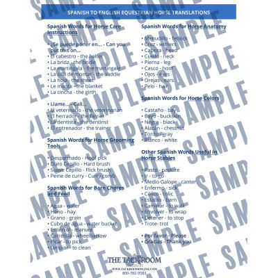 A nicely laminated 8.5 X 11 page with equestrian related english to spanish translations!