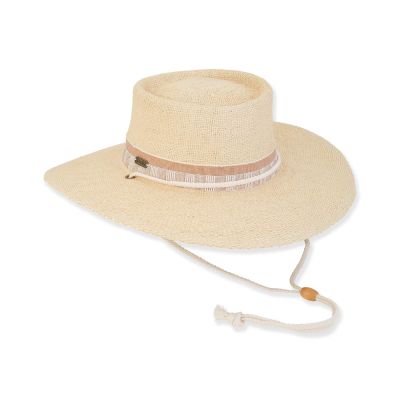 Sun N Sand Ladies Josephine Paper Straw Gambler Hat With Pattern Ribbon Trim