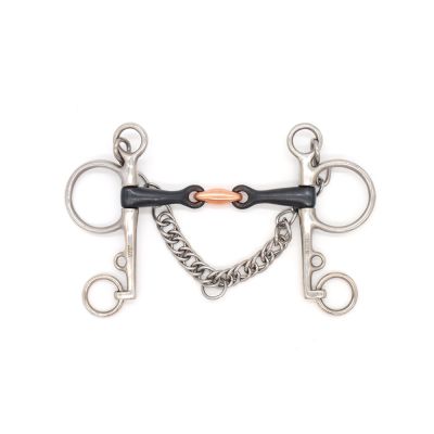 Stainless steel is the most common material for bits. Durable, easy to clean, tasteless and it does not rust. Sweet iron mouthpieces are designed to oxidize to produce a sweet taste which helps with mouthing. Copper ribs and inserts will encourage mouthing but also ensure the horse will not take up too much of a contact, ideal for horses that can take a hold.