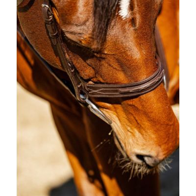 Crafted from buttery soft American cowhide, our TackHack Extra Wide Hunter Bridle features a 3 cm wide noseband for an elegant, modern look. Our TackHack exclusive stitch pattern is a Southwest-inspired riff on the classic stitch pattern. The raised portion of our bridle and reins is crafted upon leather rather than the plastic used in many bridles, which makes the bridle more supple and durable. Includes a matching set of reins. Available in size small pony through oversize. Imported.