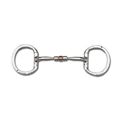 The MB 03 is the Myler alternative to the traditional French link or lozenge mouthpiece commonly used in snaffle bits with an added copper roller. The MB 03 rotates onto the tongue, applying tongue pressure, but because the mouthpiece is curved, it wraps around the bars and lips instead of pinching. The barrel in the center applies approximately the same pressure on the tongue as a traditional three-piece mouthpiece, however, the barrel distributes the pressure more kindly and creates Independent Side Movementâ„¢.