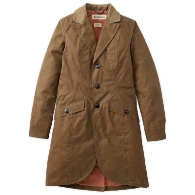 Tracing its roots to the dusty trails of America’s West, the Women's Frock Coat is the centerpiece of Tom Beckbe's collaboration with Janie Bryant, Emmy award-winning costume designer and Tom Beckbe's Designer in Residence. The Frock Coat is a classic, mid-thigh length coat with an all-weather waxed cotton exterior and flattering princess seams on the front and back. Paired with refined, authentic details like horn buttons and a soft corduroy along the collar and cuffs, the Women’s Frock Coat marries a classic look with a modern fit and sensibility. The sleeves are lined with a smooth polyester twill that glides over layers with ease. Available in the color tobacco, the Women’s Frock Coat is complete with a nod to Tom Beckbe's roots: an interior cotton liner inspired by Alabama red clay. Sized XS-XL. Made in the U.S. of imported materials.