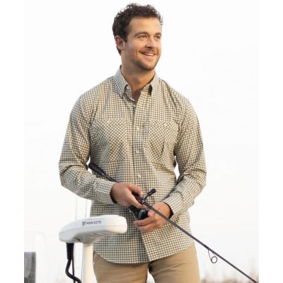 The new Tidewater long sleeve fishing shirts are quick-drying, easy-caring, and smart-looking. The shirt combines the soft, natural comfort of cotton with the performance features that warmer weather demands. The shirt is made with an exclusive light and breathable cotton / nylon blended fabric that weighs 2.85 ounces. It is equally at home on the water and your local watering hole. The Tidewater provides UPF 30+ coverage from the sun and has two pleated chest pockets with button closures. It has a classic fit with light stretch, button collar and adjustable two-button cuff.