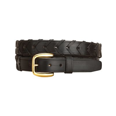 This 1.25" creased leather belt features overlay lacing and a brass buckle attached with snaps so it can be changed if desired. The perfect belt for both men and women with a laced pattern that is sure to enhance an outfit!