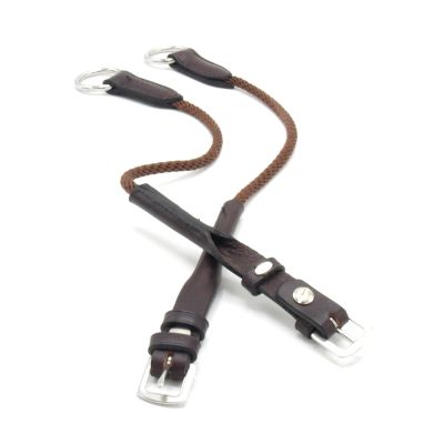 Brown rope gag cheeks with Havana leather ends, stainless steel buckles and rings.
