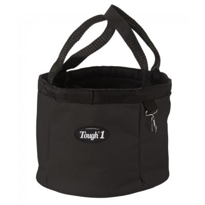 Tough nylon grooming caddy with multi-pockets inside to keep brushes and spray bottles upright. Also features a spring snap on outside for a hoof pick or more. Will hold most everything you need for the final finishing touches. 8" x 9".
