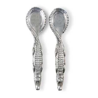 Alligator heads and legless bodies form the handles of these pieces, while their tails create a unique border around the edge of the bowl. Handcrafted in sand-cast aluminum, this set is as versatile as it is detailed.