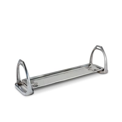 Featuring a rectangular shape, with realistic stirrup irons serving as the handles, sleek equestrian design defines our small Arthur Court Equestrian Bit and Stirrups Serving Tray. Slightly raised edges allow for carrying without worry. Bas-relief D-bit designs decorate the handle ends of the tray. This tray is highly engravable, with plenty of middle space for messages, just take to your local engraving shop when you receive it.
