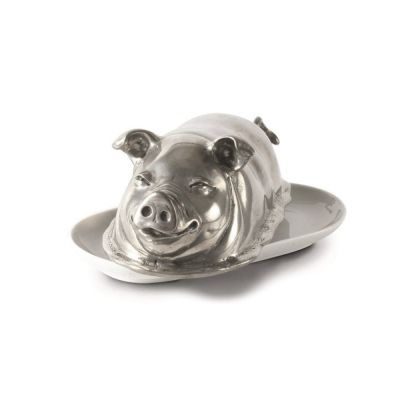 Vagabond House's Happy Pig delights everyone with charming design. Crafted in luxury-grade pewter, this Happiest of Pigs has floppy ears, a large, triangular nose, a squiggly tail and a satisfied smile.