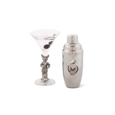 Serve drinks in these Dressed Fox cocktail glasses from Vagabond House at your next social gathering. Each stem and base of this eye-catching glass is handcrafted from pure pewter that is completely food-safe and FDA-compliant, and measures 4.75 x 4.75 x 8 inches. The hand-cast, intricately designed standing fox is whimsically dressed in a suit jacket, facing forward with one hand on hip, head lifted with pride and pointed ears raised, evoking a wonderful conversation starter for your guests. The clear, handblown glass bowl is the perfect size for holding a generous martini cocktail. As with any handmade stemware, handwashing is recommended, followed by drying with a soft cloth towel to avoid spotting. If desired, this glass is also dishwasher-safe when run on a low-heat wash-and-dry setting.