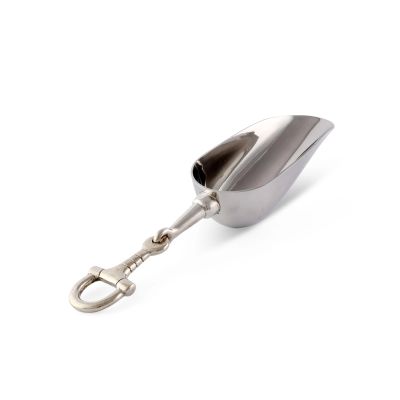 Distribute ice from a bucket with flair when using this horse bit ice scoop from the Vagabond House Equestrian Collection. Those who appreciate the sport of horse racing will love owning this large 9-inch ladle with a small replica of a horse bit on the handle's end, crafted in lustrous, silvery aluminum alloy.
