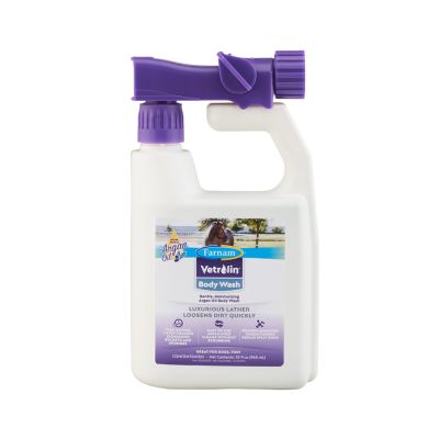 Want the results of using Vetrolin Bath, but don't have the time? Just hook Vetrolin Body Wash up to a hose and voilà ! No bucket, sponge or scrubbing necessary to clean your horse, thanks to this handy one-step applicator.