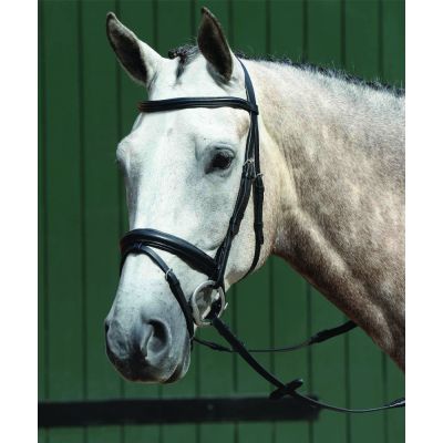 An everyday favorite. Crafted with the horse?s comfort in mind. Softly padded browband and noseband with traditional crown piece and fancy stitch details. Superb craftsmanship is reflected in elegant details and stainless steel fittings. A great option for competing in low level show jumping, cross country or everyday use. Comes with rubber reins.