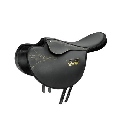The Wintec Exercise is ideal for trainers who prefer a full tree. Made from durable, weatherproof and easy care materials. Features reinforced stirrup slots and flocked paneling.