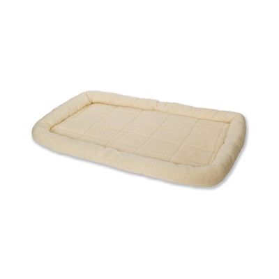 Your pet will appreciate this plush, cushioned, cotton-and-poly fleece bed. Double-thick bolster provides a sense of security. Ideal for use in crates, carriers, and houses, as well as a standalone bed. Machine washable and dryable, rolls up for storage. Measures 41 inches long by 25.5 inches wide.